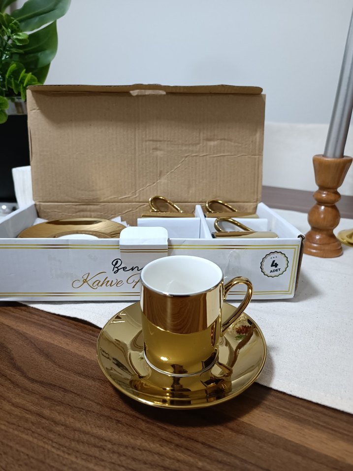 Parlak Altın Renkli 4'lü Kahve Fincan Seti
