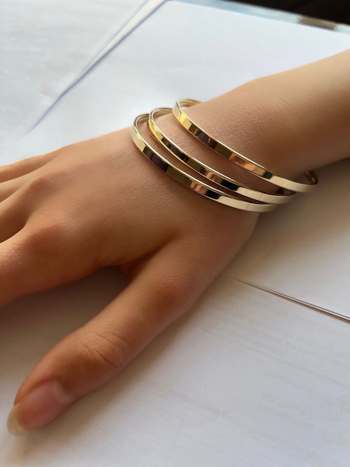 Parlak altın renkli, günlük kullanıma uygun şaplam kaliteli 3lü ajda bilezik