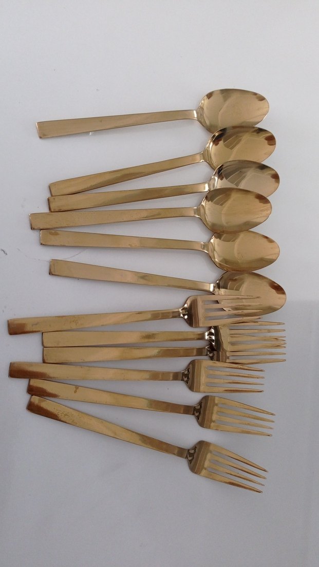 Parlak Altın Renkli Çatal Kaşık Seti