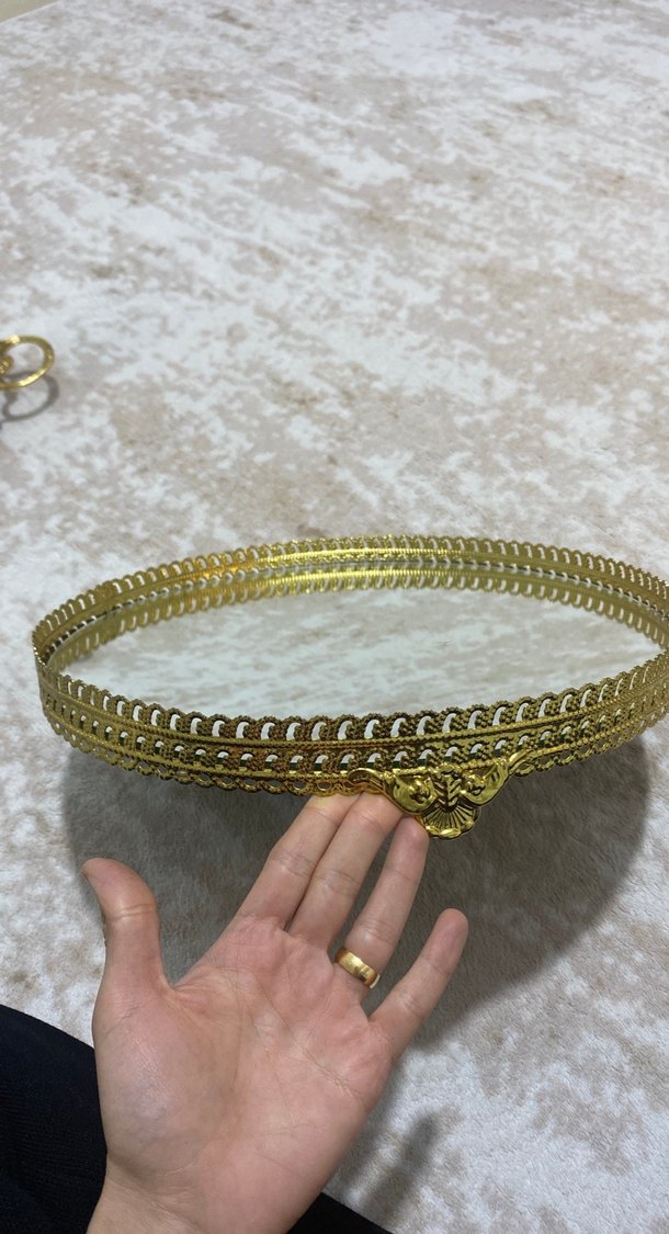 İnce detaylı, parlak altın renkli çerçevesiyle dekoratif bir ayna. Her odaya şıklık katar.