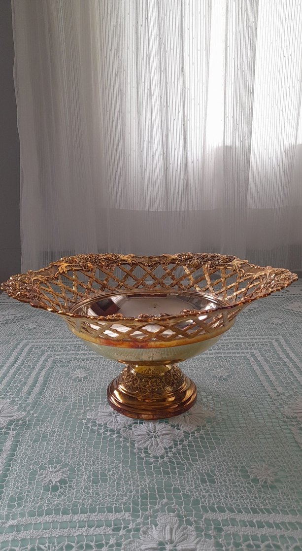 Parlak altın renkli, detaylı oyma desenli ve sağlam tabanlı dekoratif gondok, her mekana şıklık katar ölçüleriresimlerdemevcuttur.