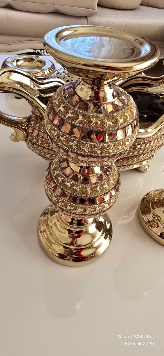 masa takımı , Parlak Altın Renkli Dekoratif Vazo