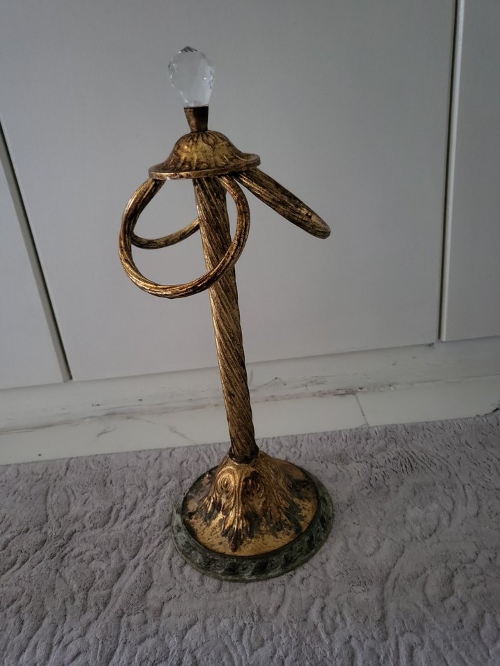 Parlak altın renginde, süslü tasarımlı, kristal görünümlü üst detaylı havluluk. Yuvarlak sağlam taban. ️