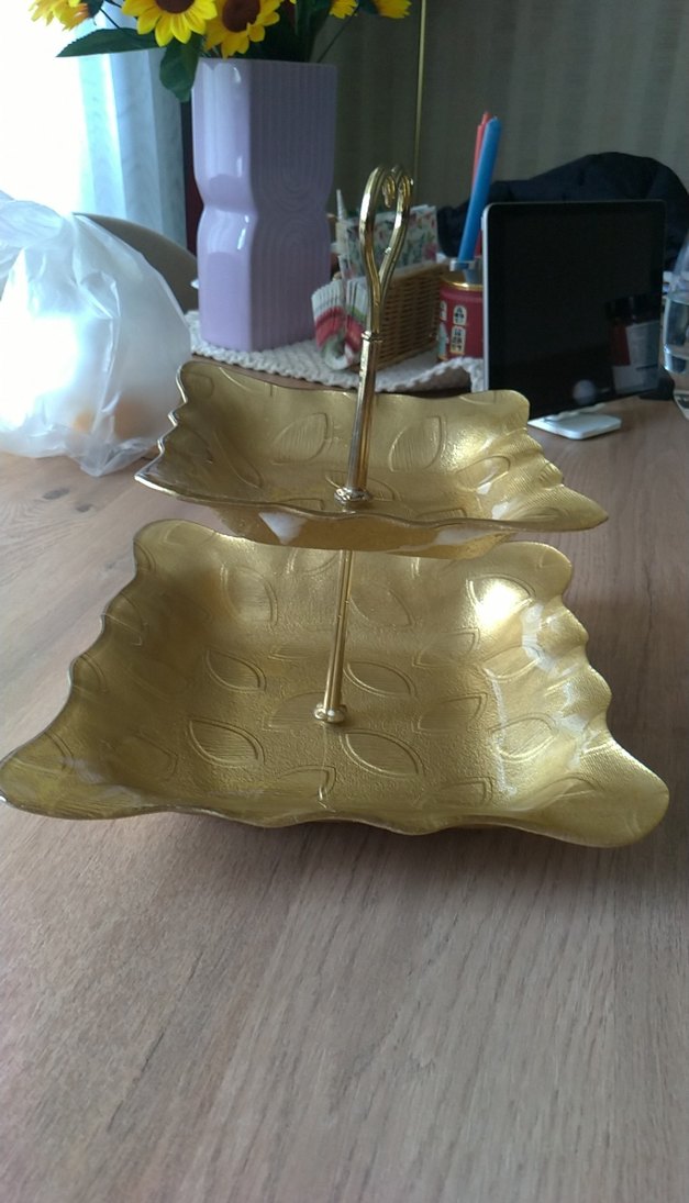 Parlak Altın Renkli İki Katlı Servis Tabağı