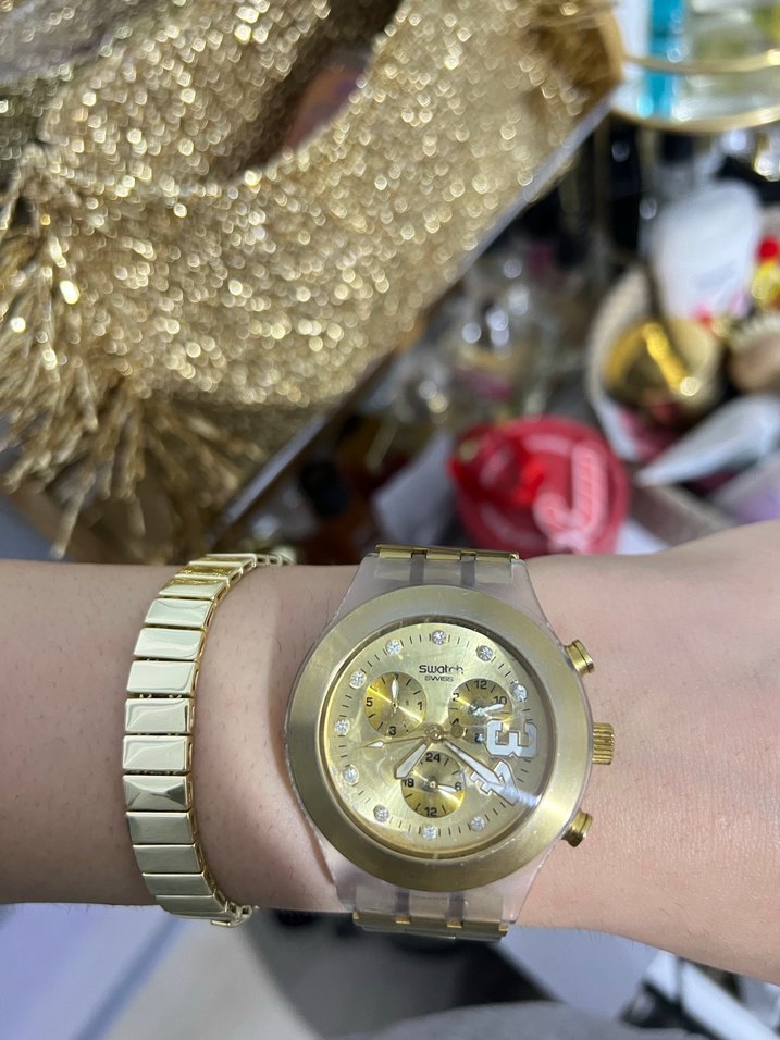 Çok yakından bakınca Ufak tefek çizikleri var tabiki fiyatı uygun tuttum uzaktan bakınca yepyeni Parlak altın renkli, tokalı kadın kol saati, şeffaf ve şık kadranıyla trend sokak modasına uygundur. ⌚