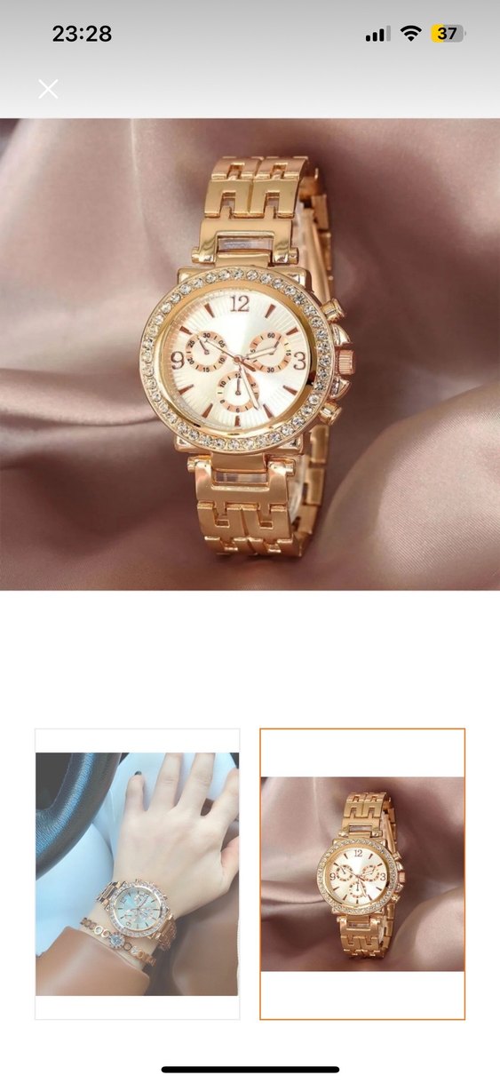 Parlak altın renkli kadın saati, pullu detaylara ve çağdaş bir tasarıma sahip, trend günlük stiller için uygun. ⌚
