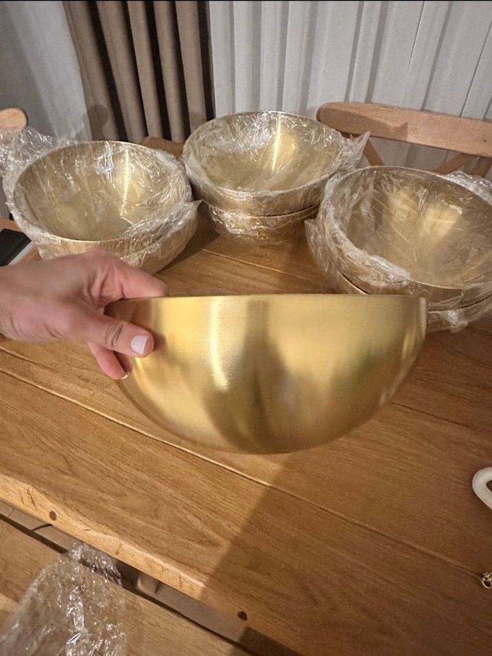 Parlak altın renkli, desen içermeyen ve klasik tarzda tasarlanmış kaseler. Servis veya dekorasyon için uygundur. ️ÇELİK SERVİS KASESİ ÖLÇÜLER FOTOLARDA VARDIR İADE DEĞİŞİM ASKA YOKTUR ONA GÖRE ALINIZ MARKASIZDIR ADET FİYATIDIRRRRR ADET