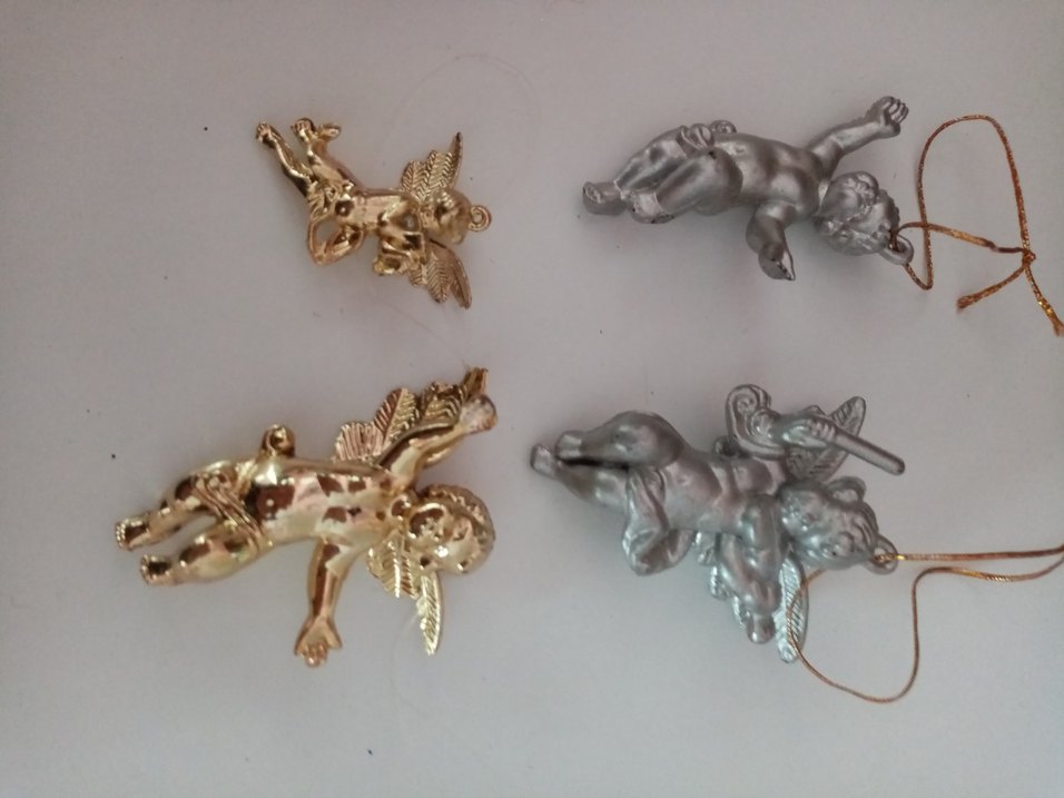 Detaylı kanatlara ve zarif özelliklere sahip parlak altın renkli melek figürleri. Küçük dekoratif parçalar olarak şıklık katar. ✨Noel ağaç süsleri tekli satış yoktur