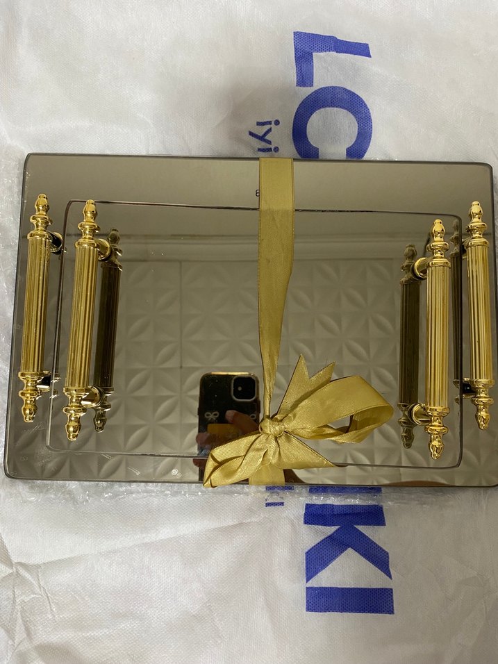 Parlak Altın Renkli Metal Tepsi