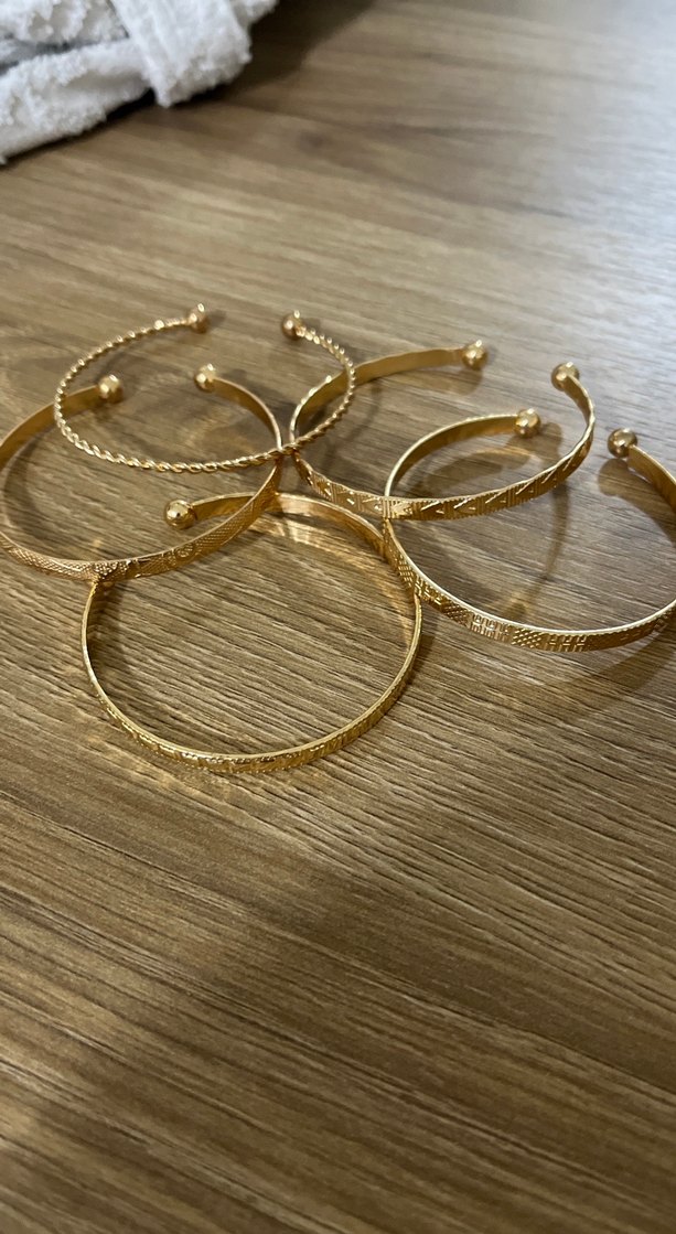 Parlak altın renginde, boncuk detaylı ve sade tasarımlı minimalist ve bohem tarzda bilezikler. ✨