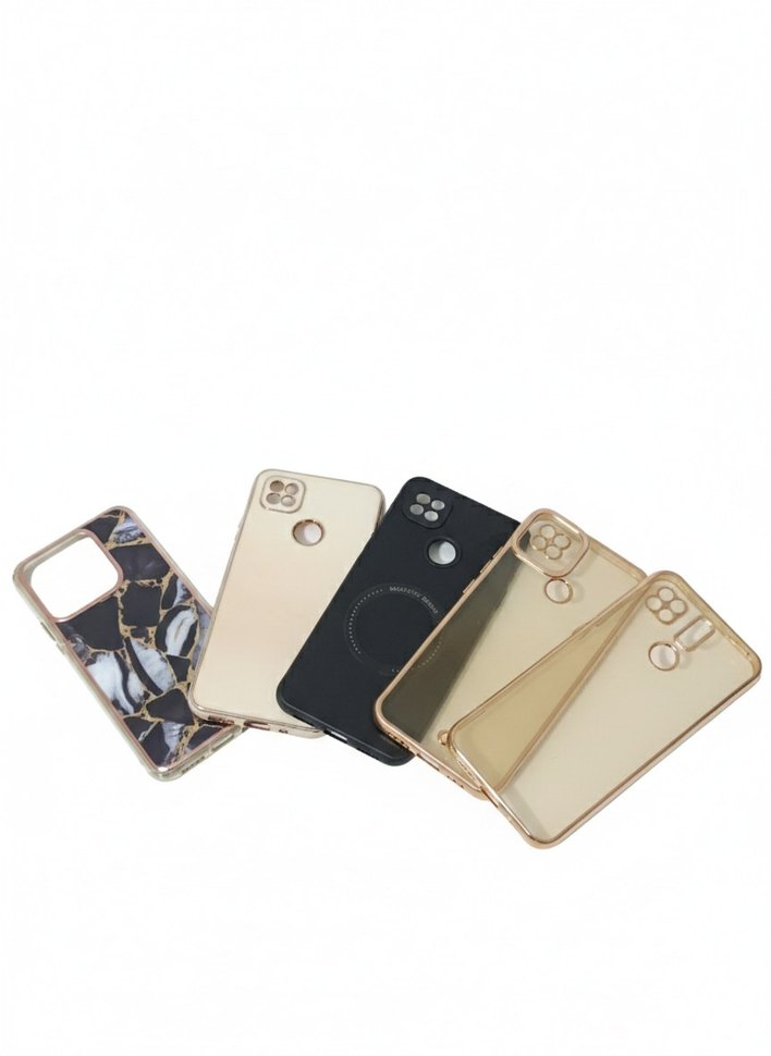 Parlak yüzeye sahip, koyu renk vurgulu altın renkli modern telefon kılıfı. Cihazınızı korurken şık bir görünüm sunar.