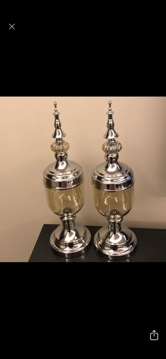 İki adet çok şık parlak gümüş drajelik aksesuar süslü ve zarif tasarımlı, yüksek ve dekoratif üst kısmı ile sağlam tabana sahip hiç kullanılmadı nişan masamda sadece birkez kullandım