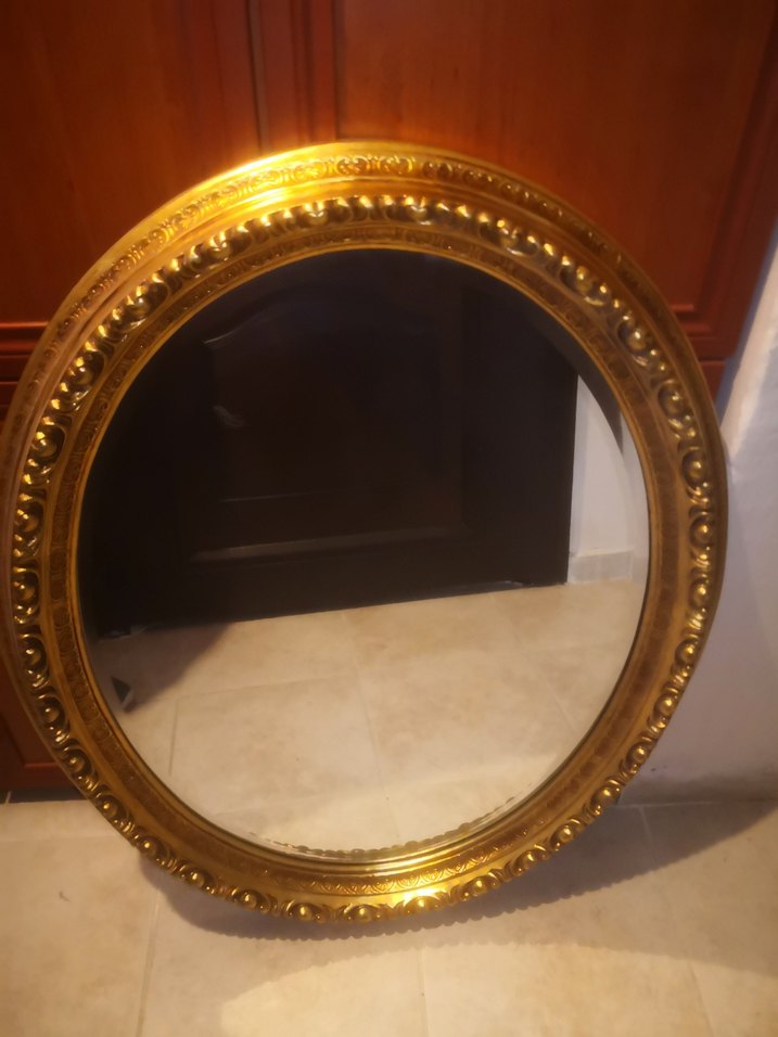 Detaylı süslemelere sahip parlak altın varaklı ahşap oymalı oval ayna, mekana klasik bir dokunuş katar. 72cm x 91cm ebatlarinda