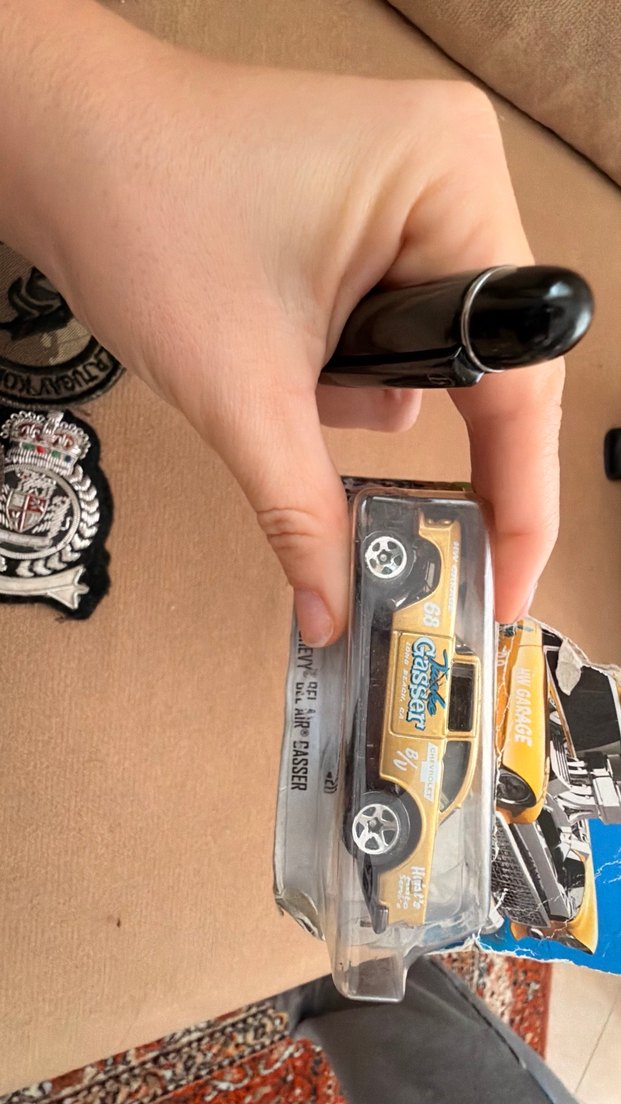 Parlak altın renkli oyuncak araba, detaylı tekerlekler ve 'Casser', 'BELAIRCASSER' yazılı etiketlere sahiptir. Orijinal kutusunda.