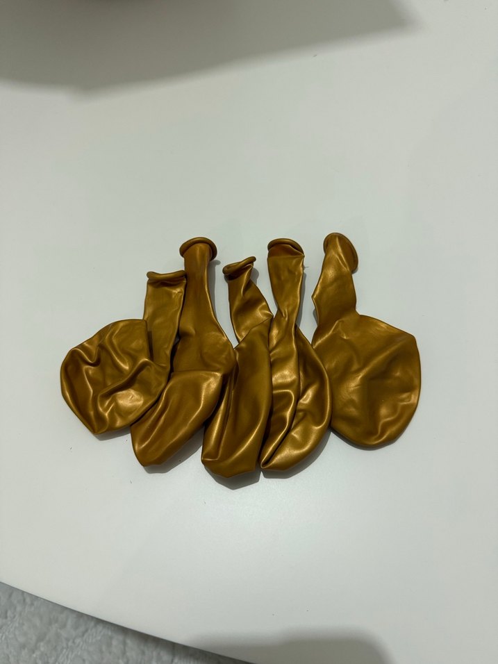 Parlak altın renkli balonlar, parti süslemeleri için uygundur ve canlı renkleriyle şenlikli bir hava katar.