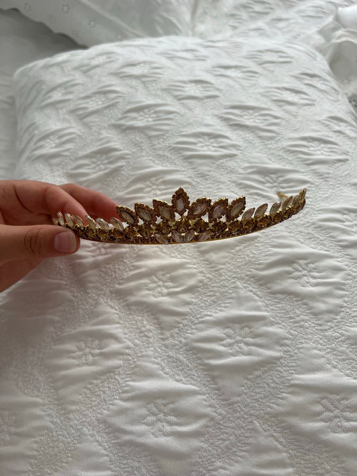 Parlak payetlerle süslenmiş, klasik zarafet ve bohem tarzı bir araya getiren vintage altın renkli taç. Kırmızı taacımla devam ettim hiç kullanmadım.