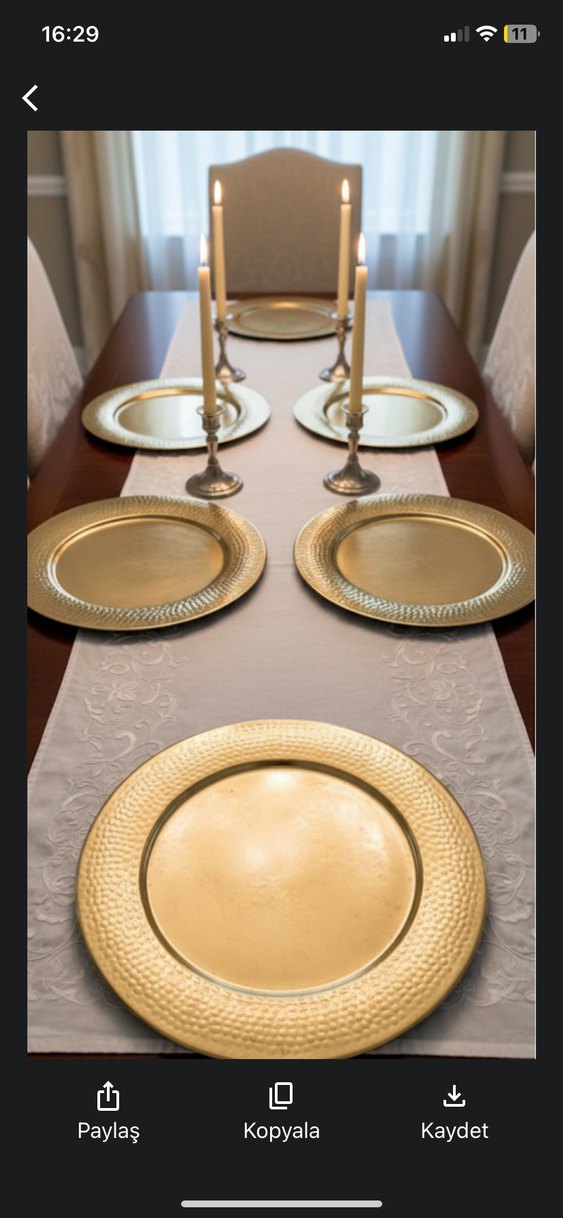 Parlak altın renkli dokulu ve düz merkezli Supla tabak, sofranıza özgünlük katar. ️