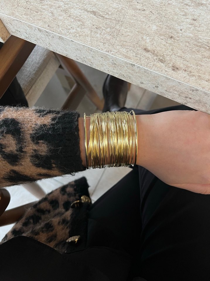 Parlak altın renkli elastik bileklik, yılan desenli ve bohem tarzı Paris havasıyla günlük kullanıma uygundur.
