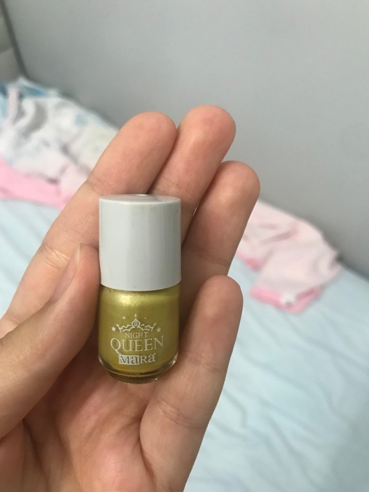 Night Queen MaRa koleksiyonundan parlak altın renkli tırnak cilası, canlı bir bitiş sağlar ve mini
