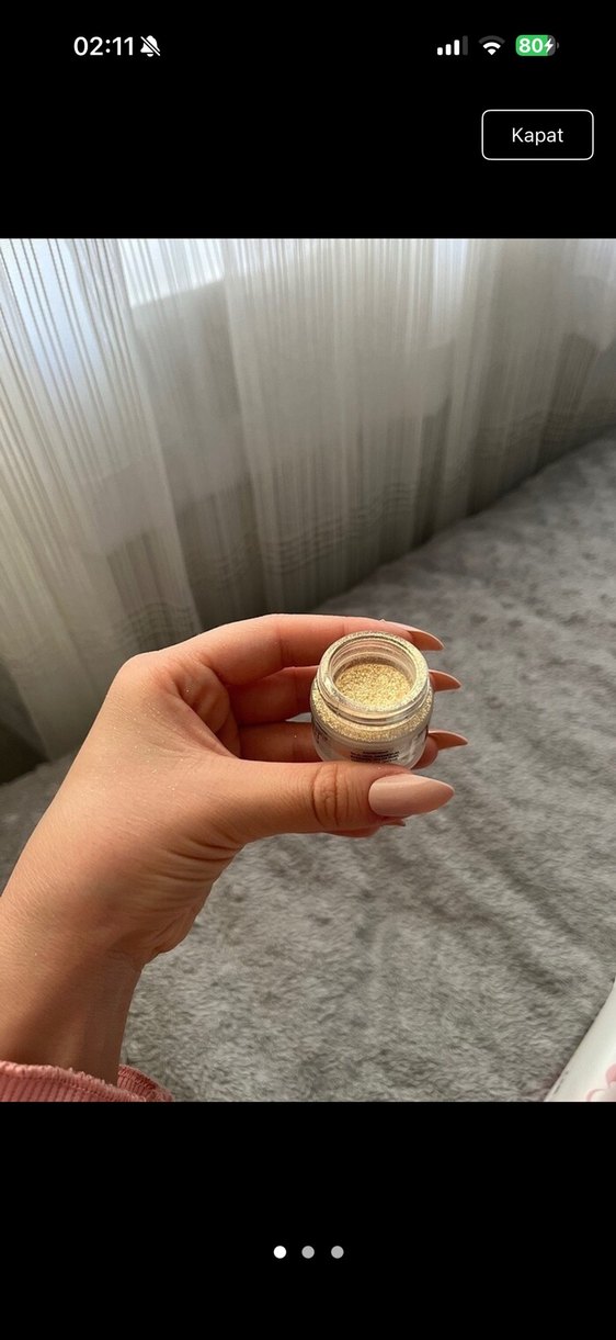 Parlak altın renkli toz, küçük bir kavanozda, ışıltılı bir dokunuş için uygundur. ✨