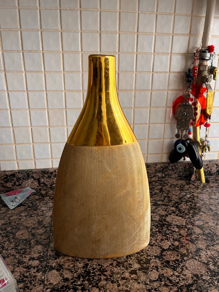 Parlak altın renkli vazo
