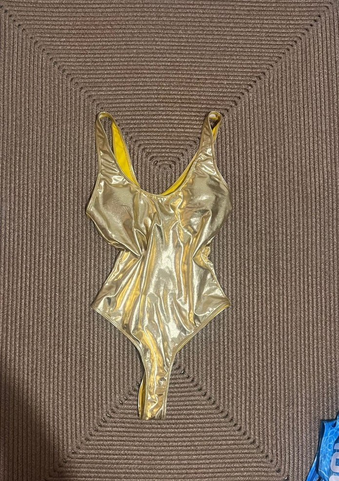 Parlak Altın Renkli Yılan Desenli Kadın Mayo