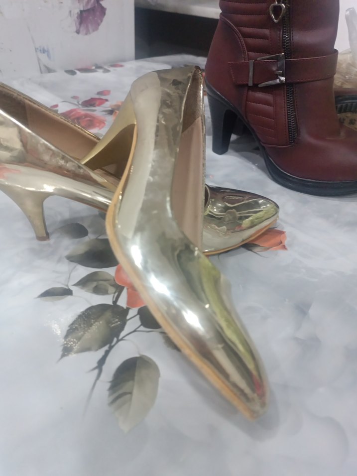 Parlak Altın Stiletto Topuklu Kadın Ayakkabı