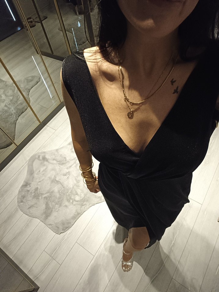 Parlak altın renkli, yılan desenli ve drapeli tasarıma sahip, gotik tarzda kadın vücut zinciri. Cesur ve minimalist.