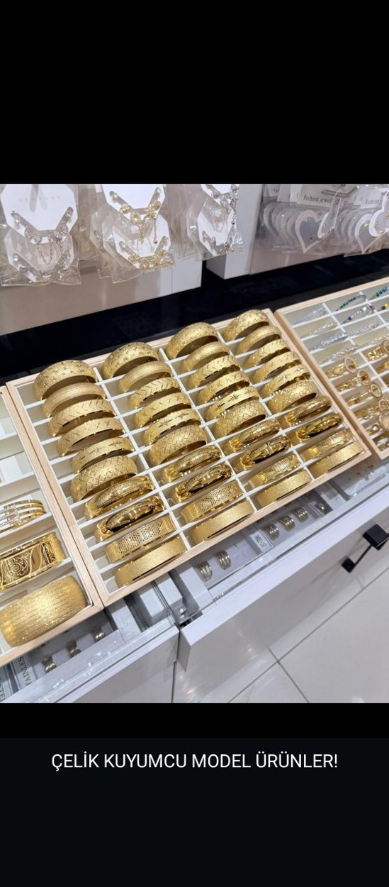 Parlak altın renkli, zincir detaylı desenli bileklikler. Günlük kullanıma uygun, sade ve göz alıcı tasarıma sahip. ✨
