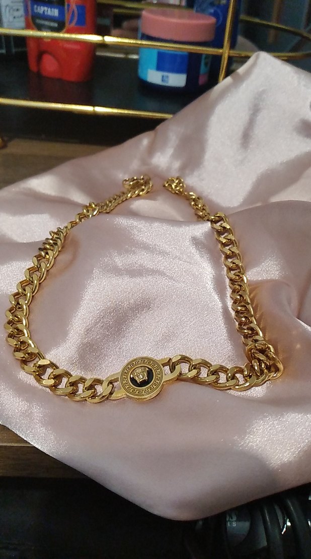 Parlak altın renginde, zincir detaylı ve yılan desenli kadın kolye, klasik şıklıkla günlük kullanıma uygun.