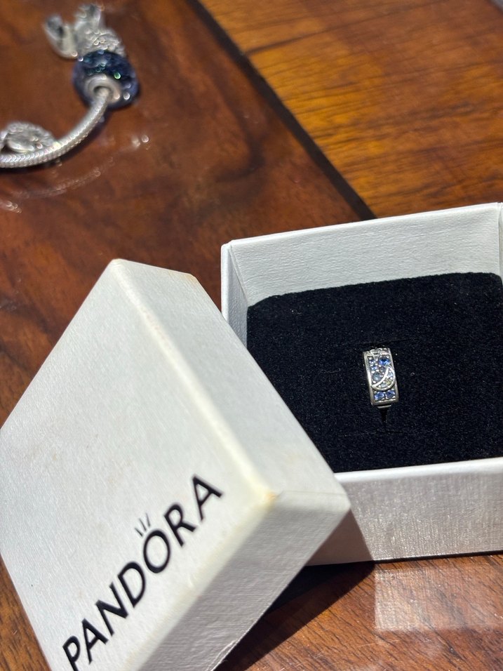 Parlak beyaz baskılı Pandora kadın charm, payet detaylı, minimalist ve bohem tarzları romantik geceye uyumlu şekilde birleştiriyor. ✨