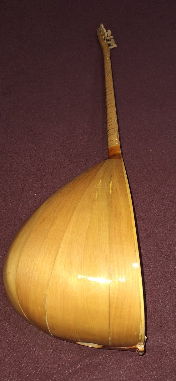 Parlak yüzeye sahip bej bağlama, ahşap gövde ve sap ile geleneksel müzik için uygundur. ufak açılmaları vardır resimlerde mevcuttur inceleyip ona göre alınız Askılı kılıfı ile birlikte