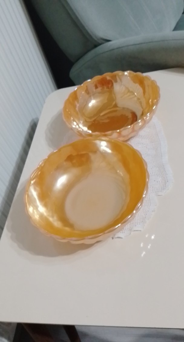 Parlak bej renkte, batik desenli ve klasik stile sahip iki adet tabak seti. ️