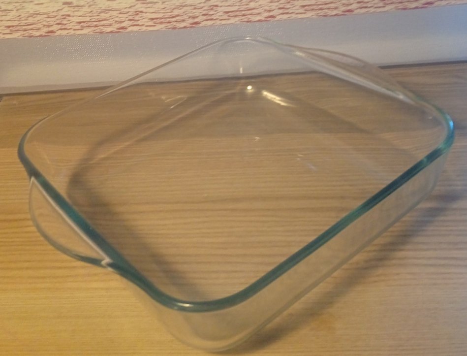 Parlak bej renkte, camdan yapılmış fırın kabı. Pişirme sırasında yiyeceklerin kolayca izlenmesini sağlar. 22×22 ELDEN TESLIM ISTANBUL USKUDAR