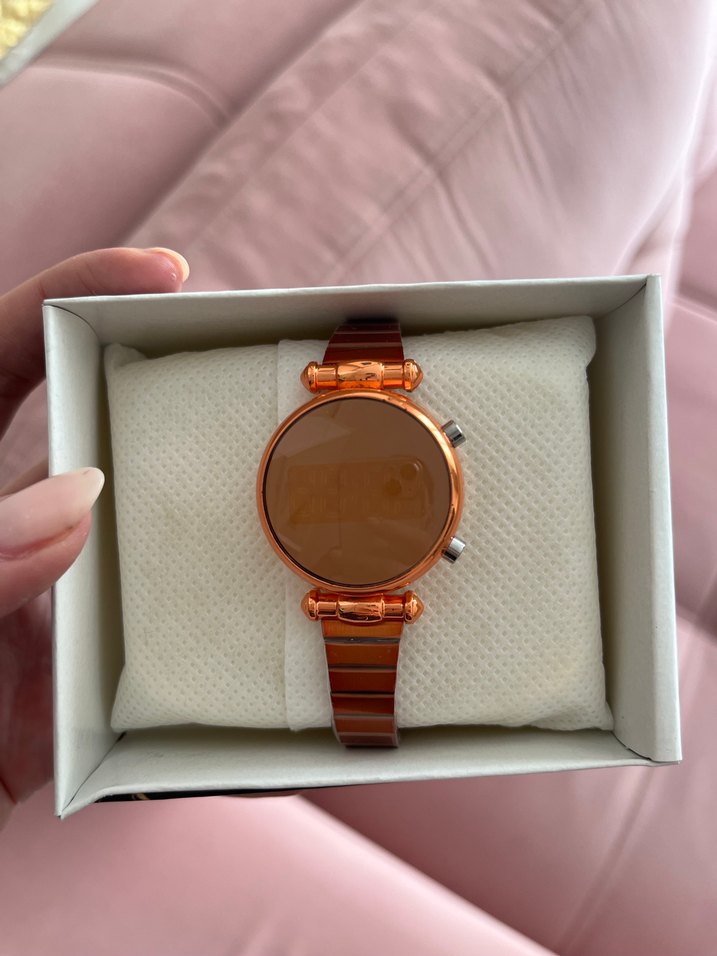 Parlak bej renkte, tokalı kayışa sahip kadın kol saati. Minimalist ve çağdaş tasarımıyla trend günlük stile uygun. ⌚