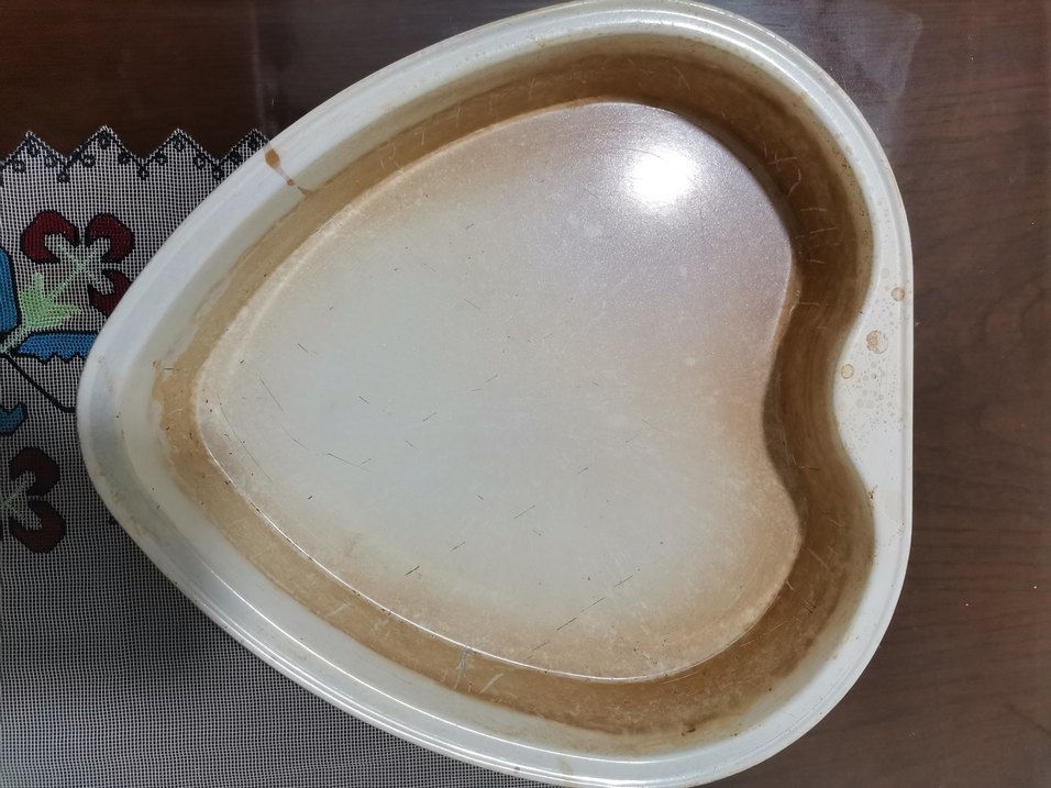 Parlak yüzeye sahip bej renkli kalp şekilli kek kalıbı, çeşitli tatlıların pişirilmesi için uygundur.