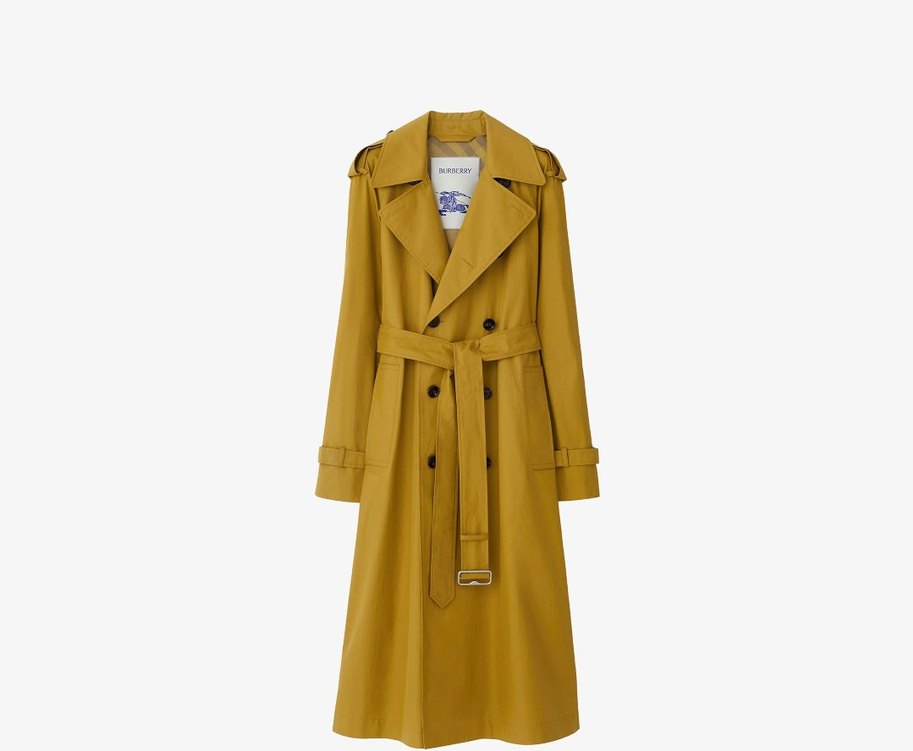 Parlak görünümlü, düz bej renkli, kemerli ve uzun kollu bu trençkot, regular kesim ve yakasında klasik kesim detaylarıyla günlük kullanıma uygundur.