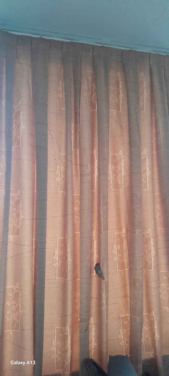 Parlak bej renkte, konvansiyonel tarzda ve desen içermeyen yumuşak dokulu perde. 3 parca seklinde en 1 mt boy 2 60 ben ikisini balkonumda kullanmak icin boydan kestirdiydim terzi yine uzun yapmis yere surulmesinden hoslanmadim oyuzden satisa cikardim 3 ů 700 tl caminiza uyarsa sizde kestirebilirsiniz