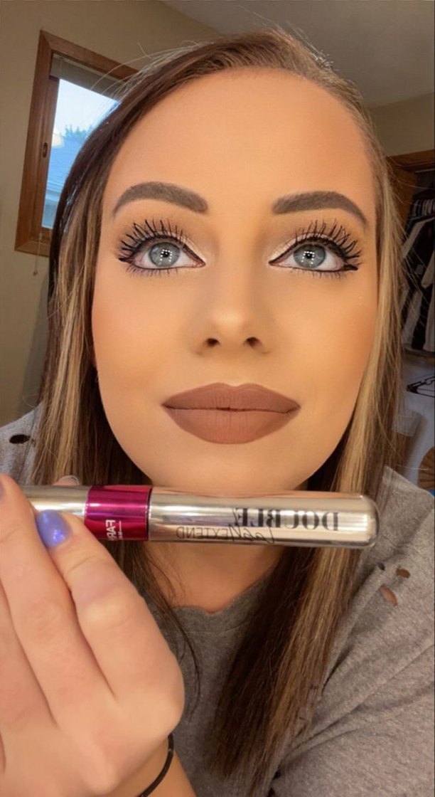 Kirpikleri belirginleştiren parlak bej renkte maskara.