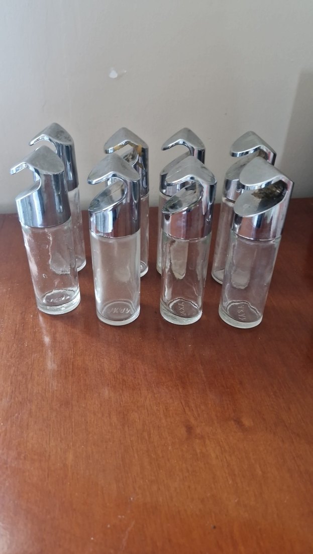 Parlak metal ağızlıklı bej mutfak baharatlar içindökme ve kontrollü akış sağlar. 8 adet cam