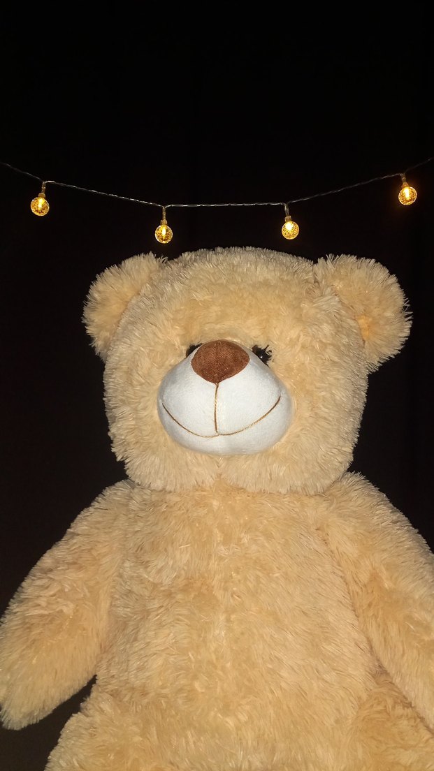 Parlak görünümlü, yumuşak bej peluş ayı oyuncak, sevimli yüzü ve kabarık dokusuyla rahatlatıcı bir arkadaş.