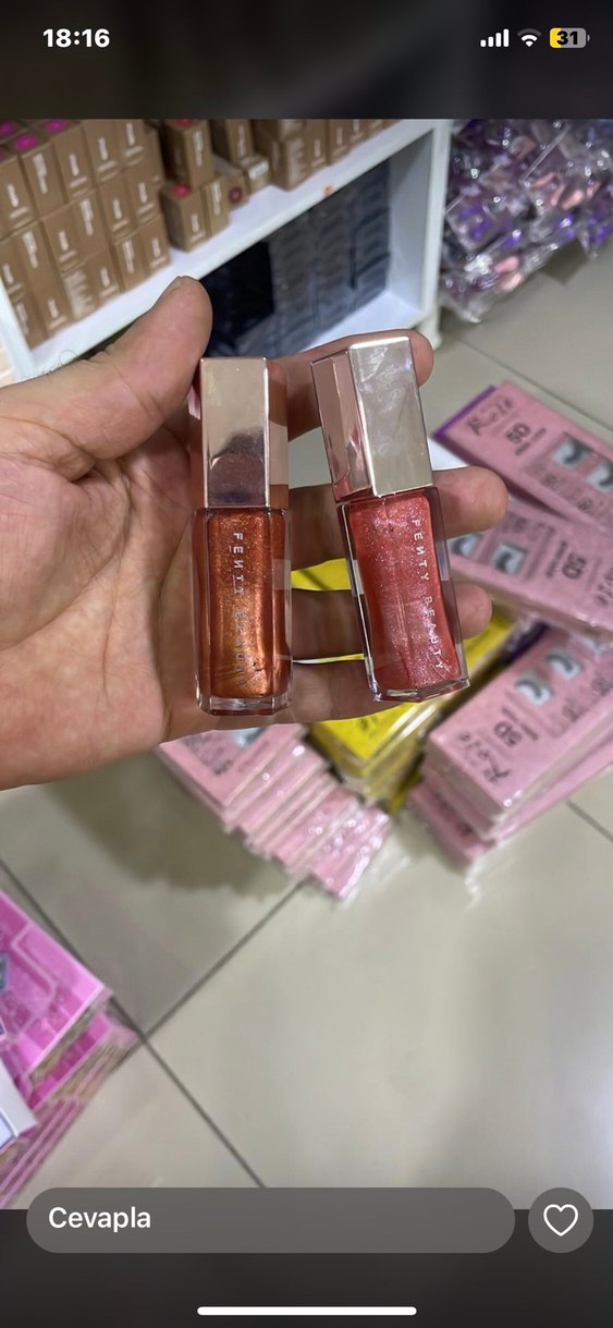 Parlak bej renkte, dudaklara parlaklık veren lip gloss. İki farklı ton, pürüzsüz ve yansıtıcı doku ile.
