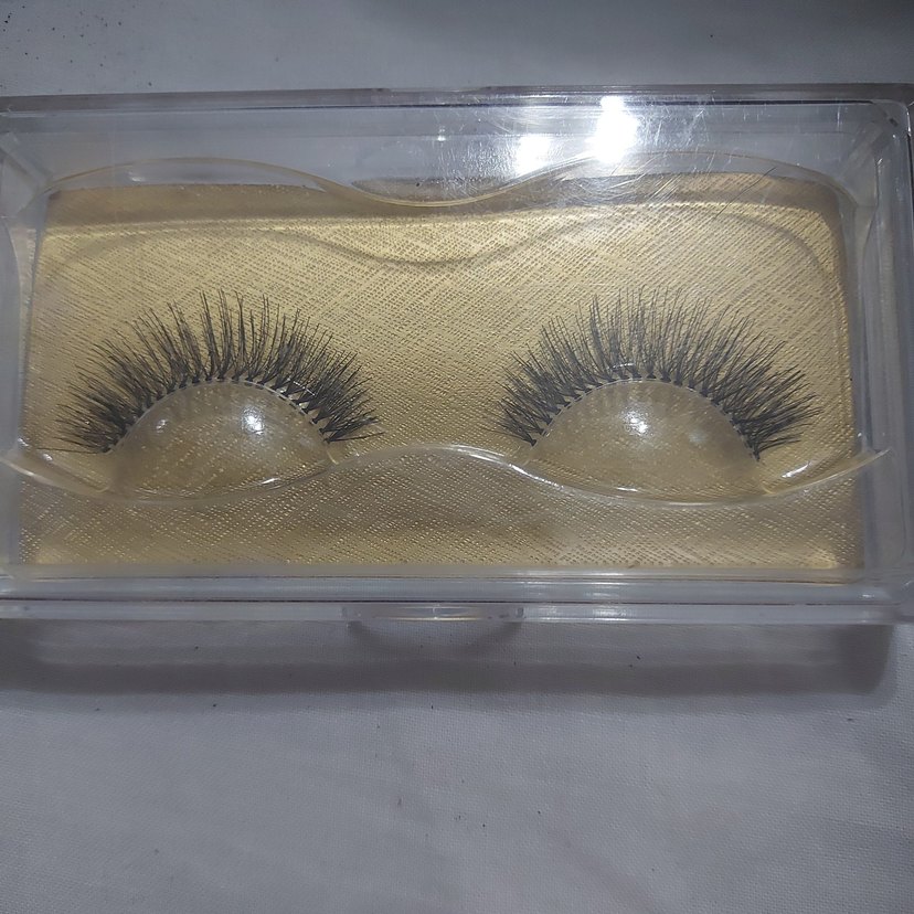 Parlak bej renkte, doğal görünümü destekleyen takma kirpikler.