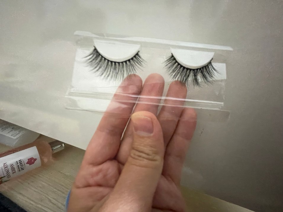 Doğal uzunluk ve hacme sahip parlak bej takma kirpik, görünümünüze hafif bir canlılık katar.