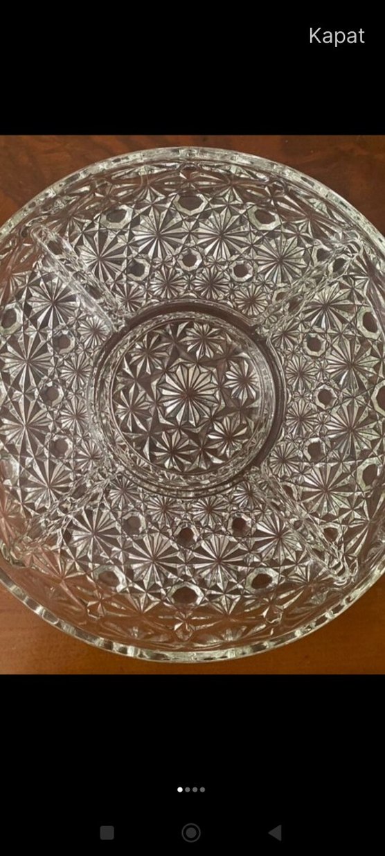 Parlak yüzeye sahip, vintage tarzında bej renkli, desenli detaylarla süslenmiş tabak. ️