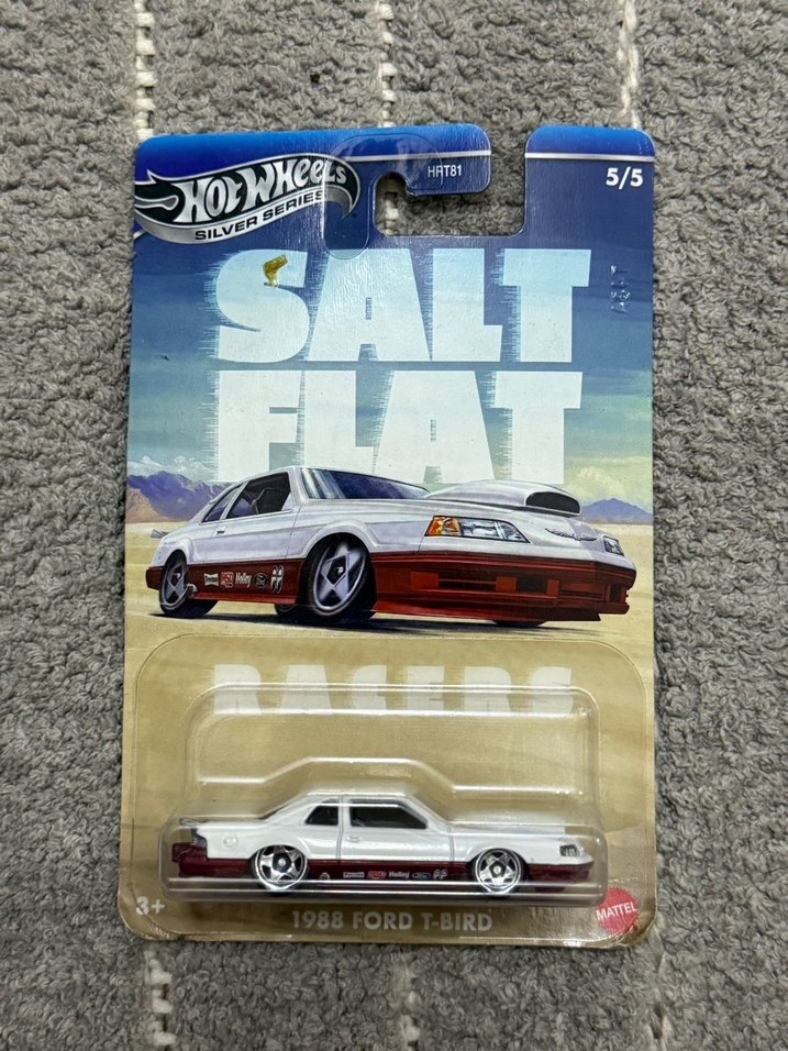 Parlak beyaz renkte, detaylı tasarıma sahip 1988 Ford T-Bird oyuncak araba. Seri içinde 5/5 numaralı model.