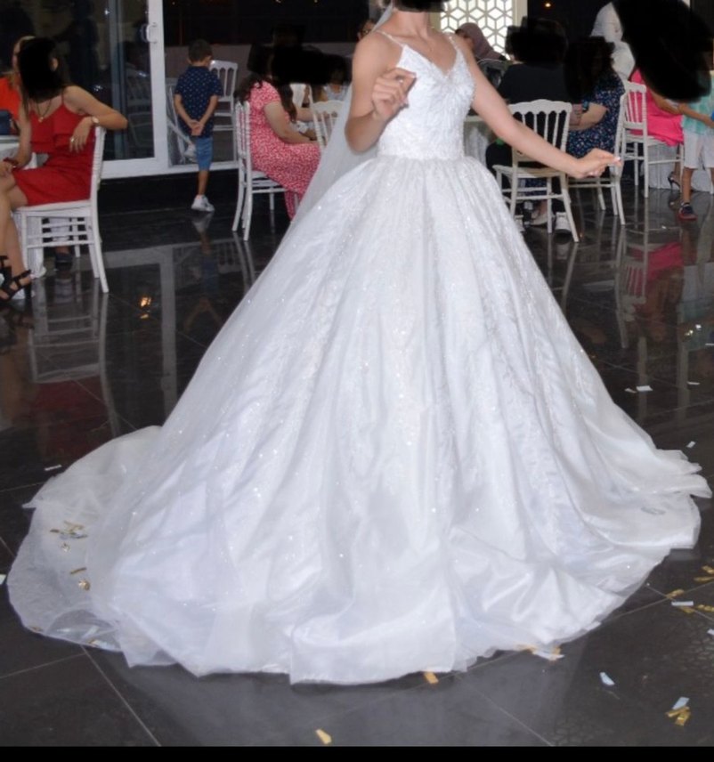 Bu parlak beyaz prenses gelinlik, straplez yaka ve ince askılarla tasarlanmıştır. Uzun ve parlak etek kısmı ile göz alıcı bir şıklık sunar. Kuru temizleme yapılmadı fiyatı düşüldü. Tacı isteyene hediye gönderilecek. Tarlatan mevcut.
