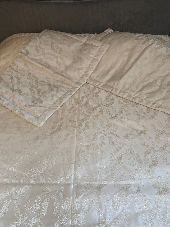 Parlak beyaz renkte, dokulu yüzeyiyle sade ve şık bir yatak örtüsüdür. ️