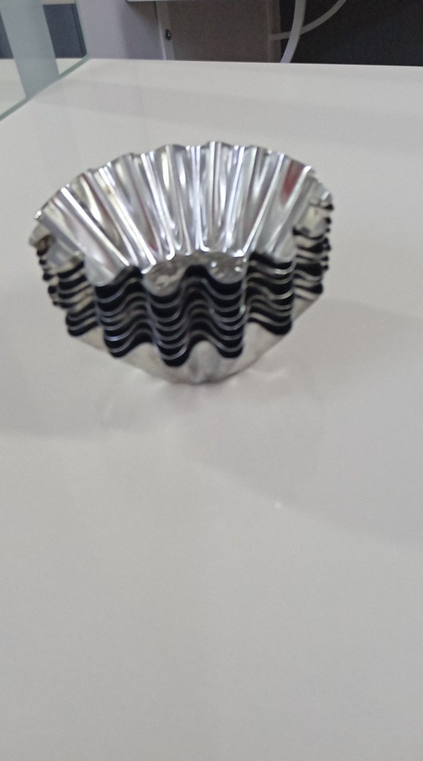 Parlak beyaz renkte, dalgalı tasarıma sahip kek kalıbı, tatlılar için uygundur.