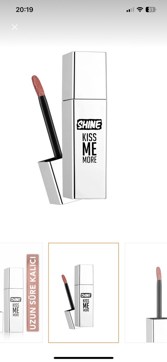 Parlak beyaz likit ruj, üzerinde 'SHINE KISS ME MORE' yazan şık tasarıma sahip. Canlı renk ve parlak bitiş sunar. Bir kere denendi elımde aynı renk olduğu için satılık 009 çok güzel bir kahve